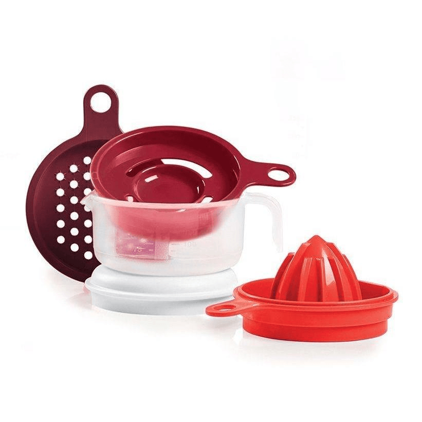 The Cook's Maid is an amazing, multi-functional set of tools essential for everyday food preparation. Whether you need some fresh lemon juice for a salad dressing or separated eggs for a dessert, this set has got you covered.