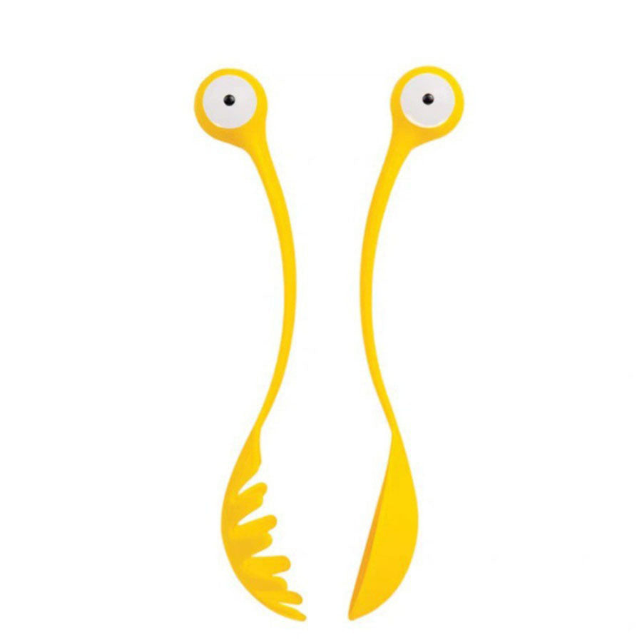 - the salad spoon and fork duo are ready to swoop and serve at your command. This salad spoon and fork set are highly durable and dishwasher safe. Aside from being adorable, these utensil servers are absolute must-haves for mealtimes. Made from 100% Food safe and BPA-free material, you can't go wrong with these googly-eyed salad spoons!