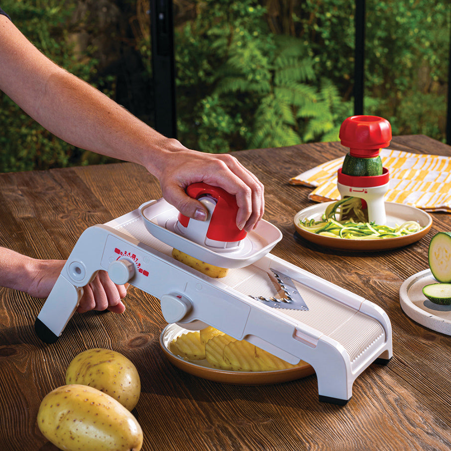 This high-grade kitchen slicer is exactly what busy cooks need: an efficient tool that is quick and easy to use. The Mandoline allows you to prep foods like a pro.
