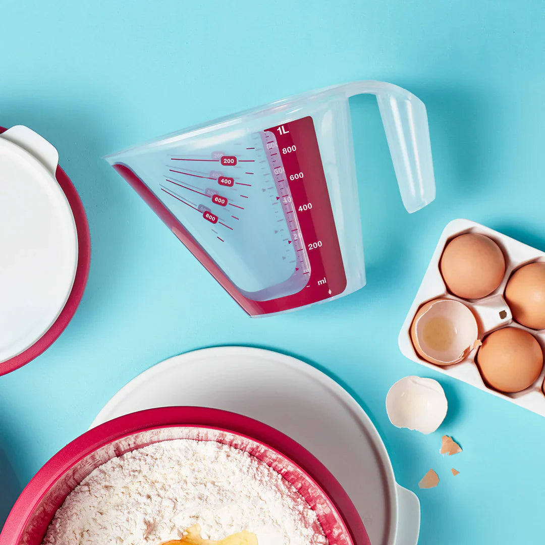This Bake to Basics Measuring Jug will changing the way you cook and bake! With a large 1L capacity, this jug optimises ergonomics to the highest level, with its angled shape and level lines for easy measuring and pouring. The ‘pour and measure’ feature consists of level lines on the sides of the pitcher. The printed measurements are contained within the material, meaning they will not wash away or fade over time. The Ergonomic handle provides a secure grip while the rounded, non-drop pouring spout allows for easy pouring making this a refreshing and vital new addition to your home.