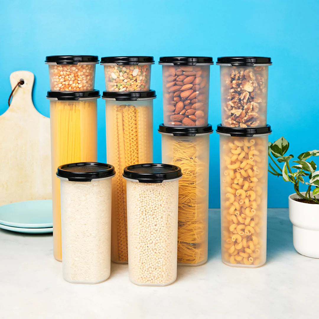 - The circular shape is suited for smaller storage needs in narrow spaces. Perfect for storing pourable foods and long, dry pasta.