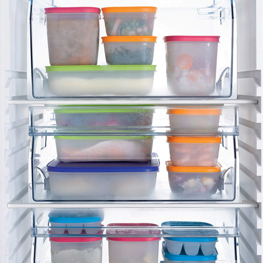 All our plastic freezer containers feature our innovative stain guard to help prevent staining from soups, stews, sauces and so much more. You'll marvel at how neatly the modular stain guard containers stack to help keep your freezer shelves organized and clutter-free. When not in use, nest the freezer storage containers to save room in your storage drawers.