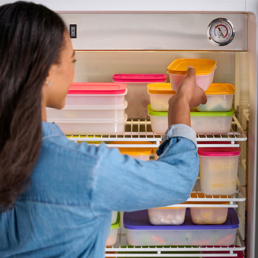 All our plastic freezer containers feature our innovative stain guard to help prevent staining from soups, stews, sauces and so much more. You'll marvel at how neatly the modular stain guard containers stack to help keep your freezer shelves organized and clutter-free. When not in use, nest the freezer storage containers to save room in your storage drawers.